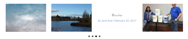 In a carousel, a few items are presented in a horizontal row, with animation or the manual ability to progress through a larger set. In the Posts Carousel module, the post or page title and other information are overlaid on the featured image. The following screenshot shows one of the variations of the Posts Carousel module, with the navigation shown as dots below the posts. See more examples later in this article.