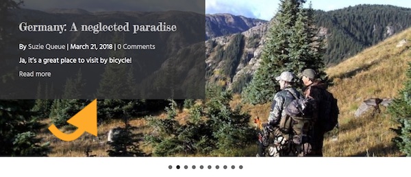 When the featured image appears in the background, you can set the post text to the left, right, or bottom of the slide. When the featured image appears as a thumbnail you can set the post text to appear to the left or right of the image.