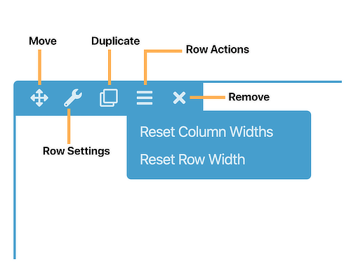 Mouse over the row that you just dragged onto the page to see a set of icons that show the available actions for that row, as shown in the following screenshot.