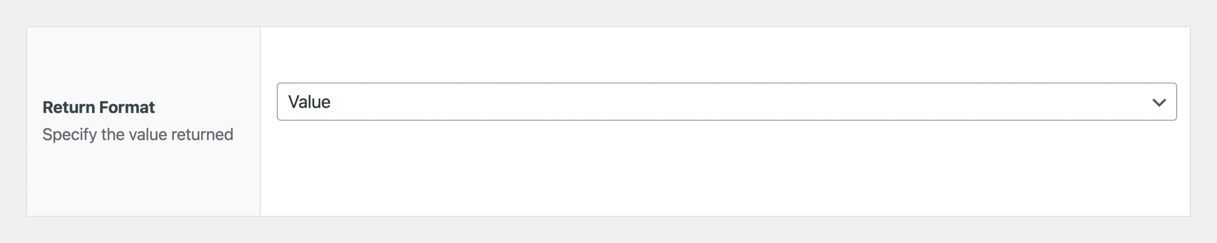The Select field connection can output either the Value or Label from the Select field Return Format setting.