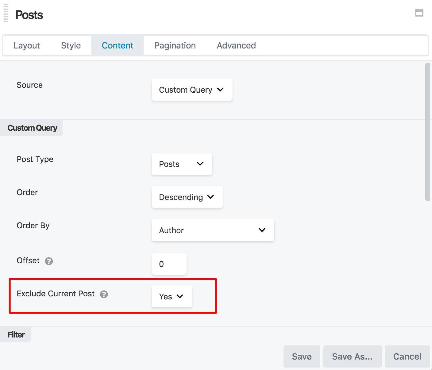 - If you don't want to include the current post as a related post, set Exclude current post to Yes.